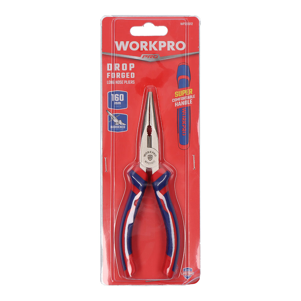 ALICATE DE PONTO LONGO 160 mm. AÇO CARBONO FORJADO DORP COM REVESTIMENTO NI-FE PARA MAIOR DURABILIDADE. C ALÇA MODO BIMATERIAL. ALÇA 30% MAIS LARGA, MODO MSC. AZUL E VERMELHO