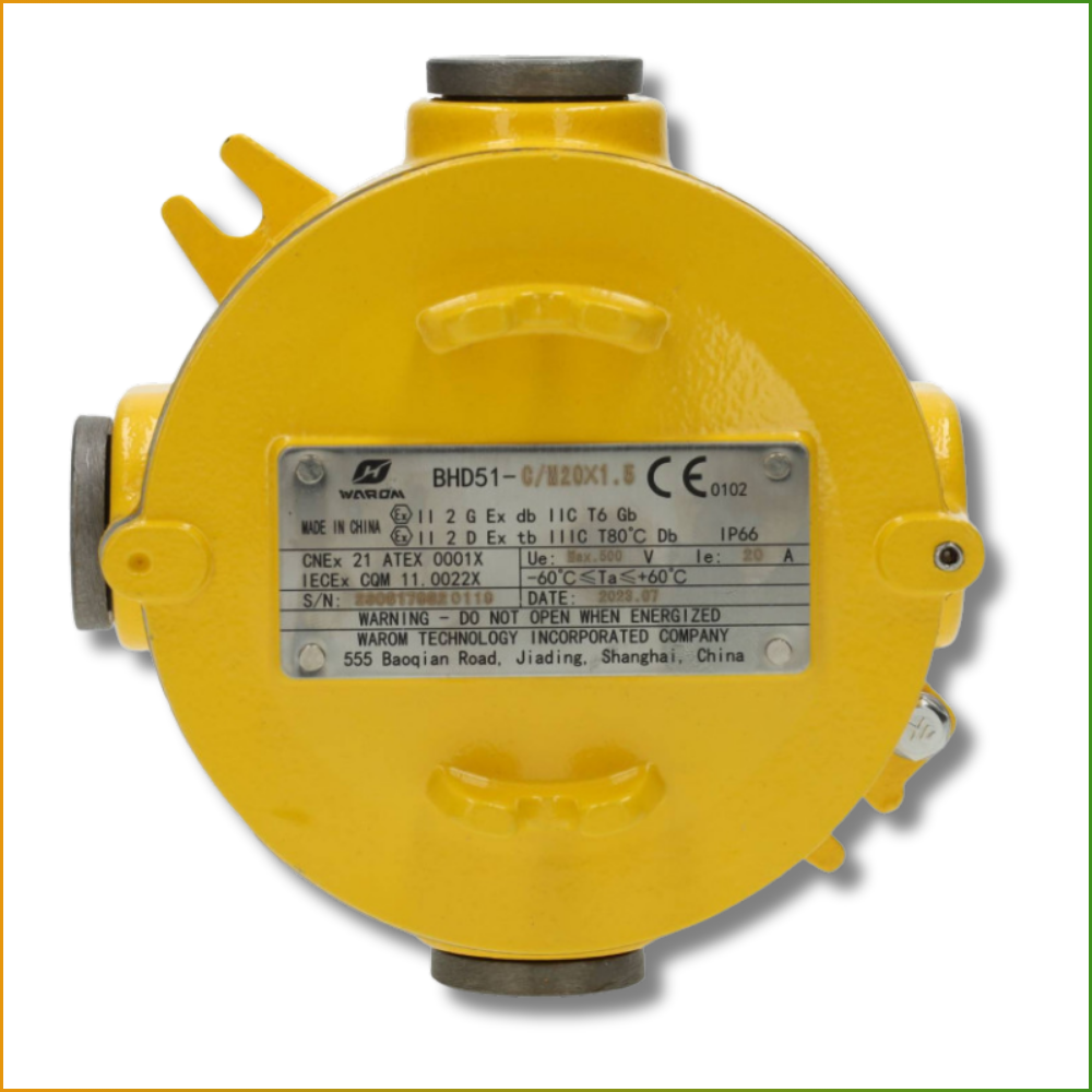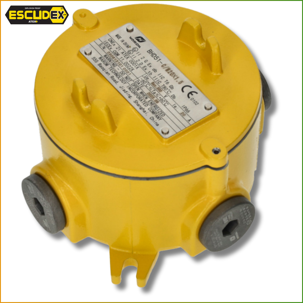 Compacta (Ø 122 x 80 mm), porém funcional, esta caixa atende às certificações ATEX, CE e RoHS. Inclui também uma garantia de 5 anos. Perfeita para fábricas ou áreas húmidas, é a solução inteligente para proteger suas conexões elétricas em atmosferas perigosas.