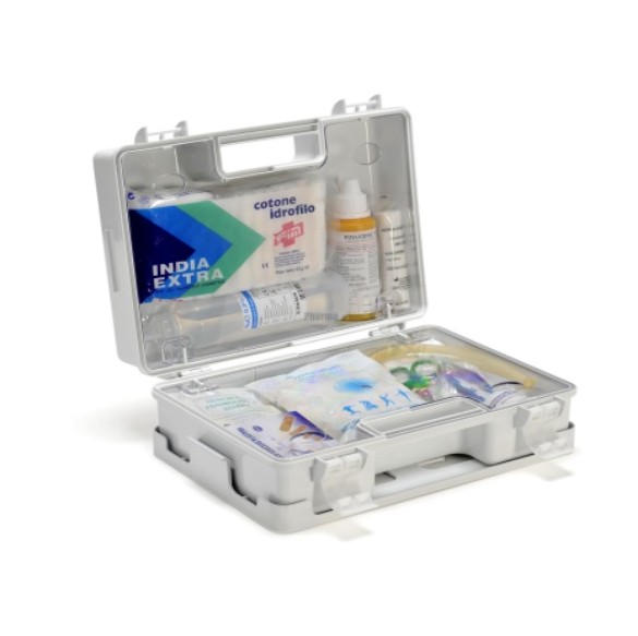 Caixa ABS anti choque, equipado com suportes para a parede, pega para transportar e com dois clipes para fechar a farmácia